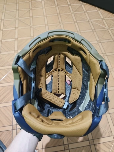 Spód kasku został wzmocniony skorupą PC, większą liczbą otworów wentylacyjnych, widocznym logo i grubą podkładką na szyję dla wygodniejszej wentylacji.